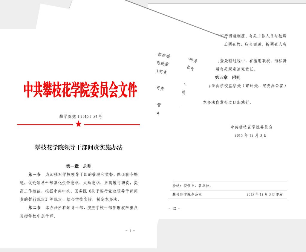 攀枝花学院领导干部问责实施办法